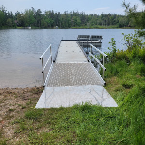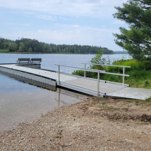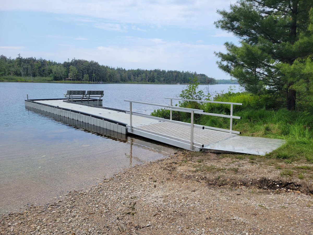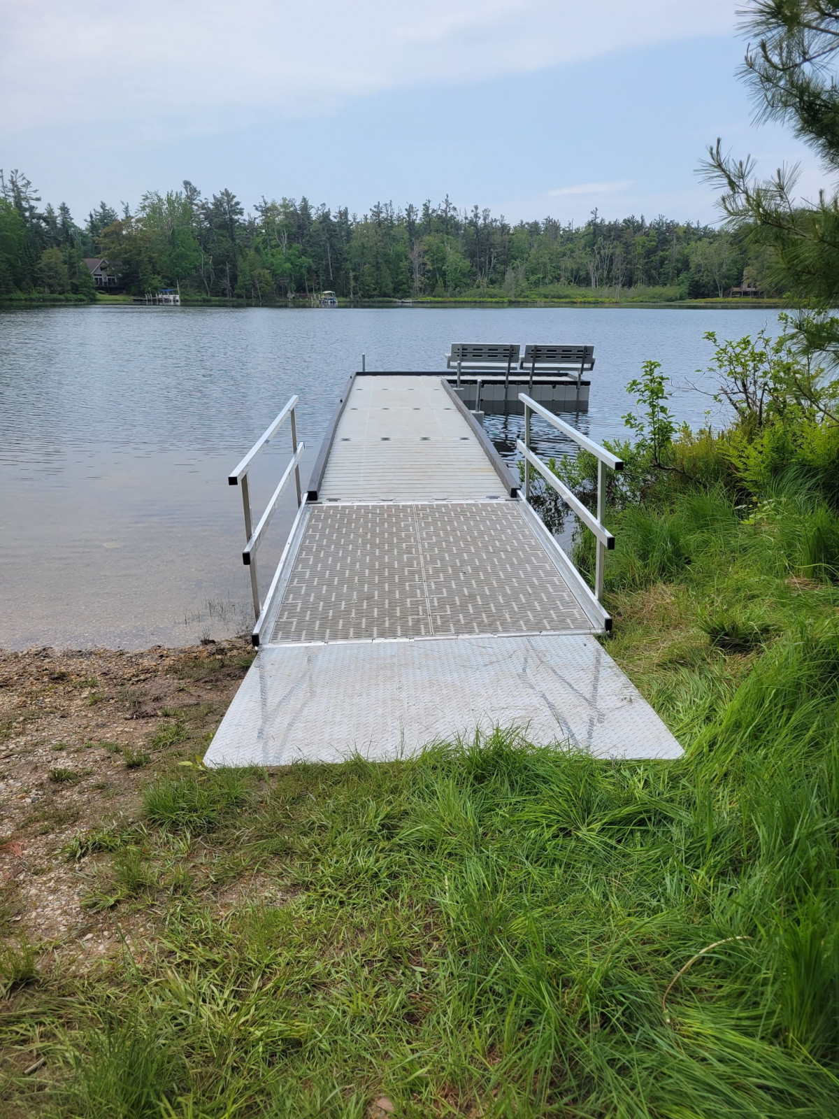 The new fishing pier is located on Lake Geneserath and offers the perfect spot for fishing, assistance launching a boat, or just to sit on the benches and take in the view. The best part is, since it’s ADA compliant, this pier opens up access for all people to use the space. BI Wildlife Club Director, Don Tritsch, shared, “Every time I visit the pier, someone is using it. Thank you to the generous C3F donors who helped fund this new fishing pier!” Enjoy these photos of the pier being installed by Matt Siller, co-owner of Island Property Services and the local distributor of EZ Dock. Also pictured are Don and Nancy Tritsch alongside Sara and Matt Siller, plus the Siller children enjoying the install day and some views of the new pier during and after installation.