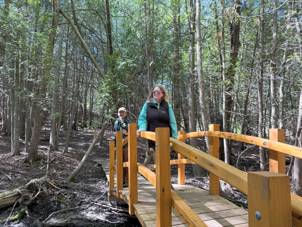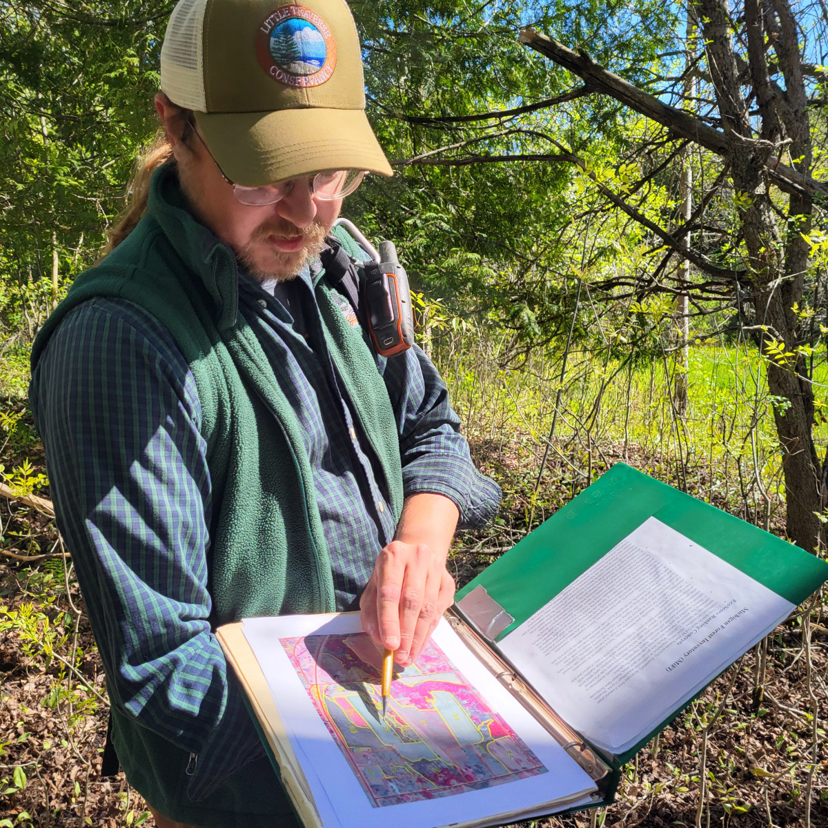 With support from a C3F Community Priorities grant, Little Traverse Conservancy was able to implement their Ecological Conditions and Response (ECAR) program across 118 preserves and reserves in Charlevoix County! They inventoried over 4,500 acres of land in Charlevoix County to create a baseline assessment of each preserve's unique ecological status. LTC Development Associate Lindsay Hall said, “The goal of ECAR is to gain a deeper understanding of the resources in our care, so that we may better steward them into the future. The data that we have collected now will inform our stewardship decisions for years to come. This includes everything from what trees are growing on the property, how old they are, mosses and lichens found on the land, native or invasive species present, and what mammals, insects, and birds populate the area.” C3F Staffers Ashley Cousens and Megan DeHoog enjoyed an informative walk on the Elizabeth Hoffman Nature Preserve with Lindsay Hall and Brad Von Blon from LTC. They even got to witness the discovery of a new lichen in our County – Brook Stippleback! As Brad shared, “it may not look like much,” but it indicates good health of the creek. It was exciting to share this ecological finding!
