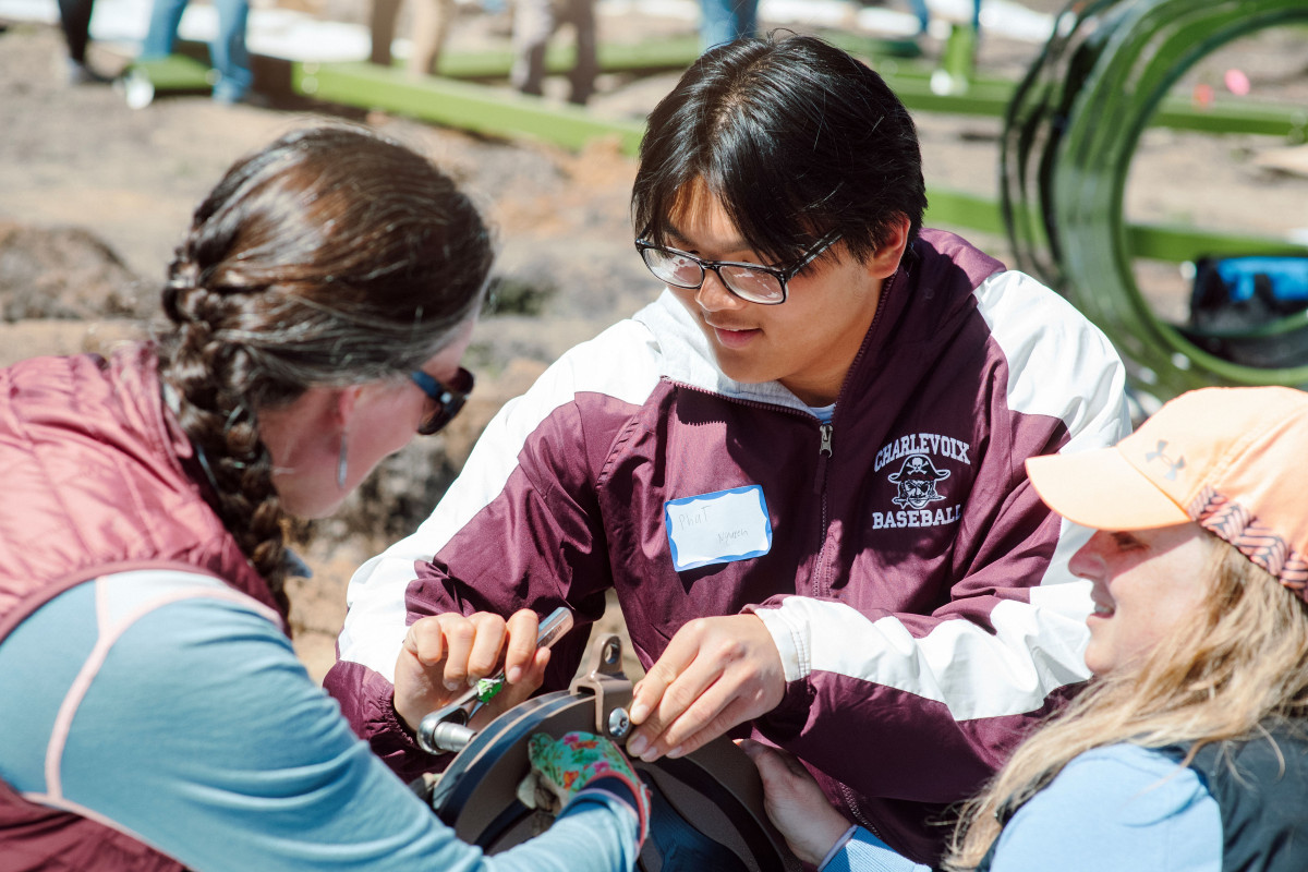The Mt. McSauba Playground Project led by the Rotary Club of Charlevoix was a resounding success! The Club is enormously grateful for and humbled by the overwhelming support of the community. Over two-thirds of the nearly $250,000 raised was funded from donations and grants such as the Youth Needs and Geographic Enrichment cycles at C3F. Additionally, over 150 Rotarians and community volunteers participated in a multi-day community building event in early May. C3F staff members Ashley, Bekah, and Megan joined the build as well as YAC member, Matthew and Geographic Enrichment youth member, Phat.